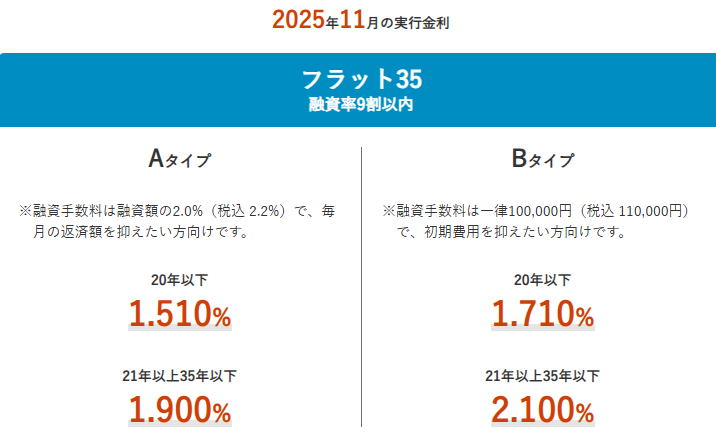 フラット35の11月の最低融資金利は、返済期間21年以上35年以下(融資率9割以下)が1.90%と0.01ポイント上がり、2カ月ぶりに上昇した。返済期間20年以下のフラット20の最低金利は、融資率9割以下が1.51%と0.01ポイント上がり、2カ月ぶりに上昇している。